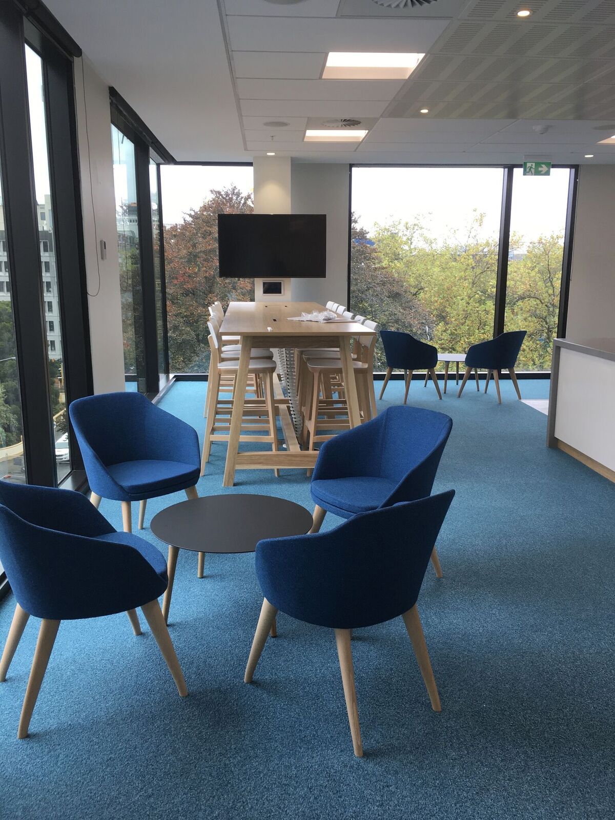 The fit out comprised of open plan desks and informal break out areas divided between the various company divisions. There are also various sized meeting rooms and a large cafeteria area overlooking the Avon River. The fitout achieved client brief with the latest technological services installed and overall appeal highly valued by the staff.